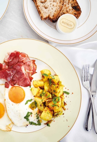 Emmental peyniri & jambonlu omlet, ekşi maya ekmek,